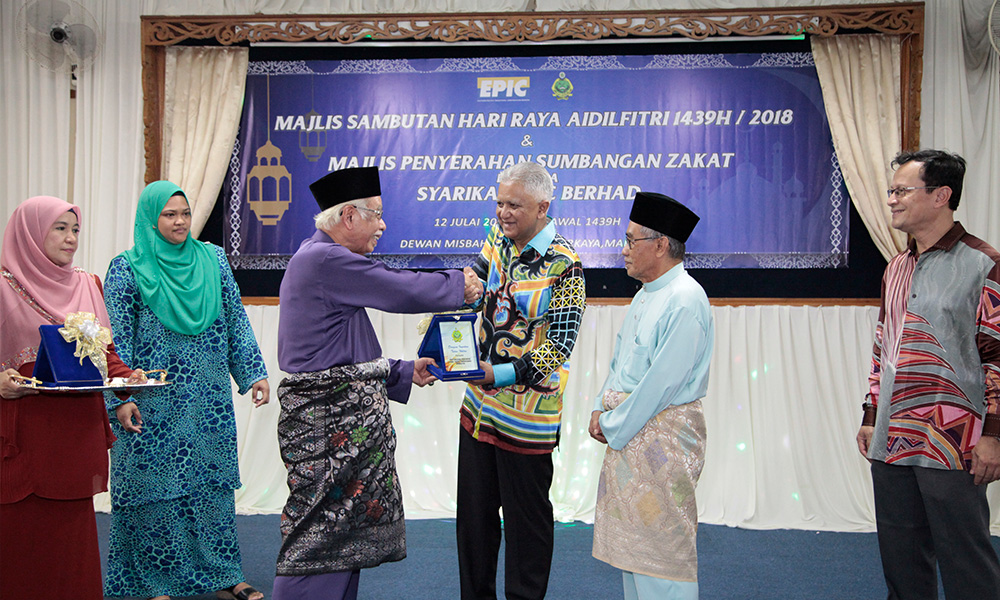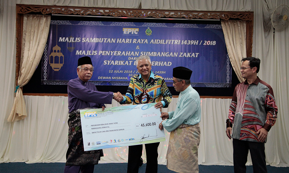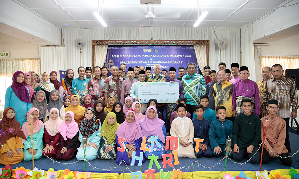 Eastern Pacific Industrial Corporation (EPIC) Berhad has distributed RM 45,000 of zakat funds to orphanage of Asrama PERKAYA Marang during their Majlis Sambutan Hari Raya Aidilfitri. Various items of groceries costed RM 19,400 were also given to fulfil their basic needs. The total of zakat funds is RM 65,000 were handed over to Yang Dipertua PERKAYA, Tengku Mahmud bin Mansor.