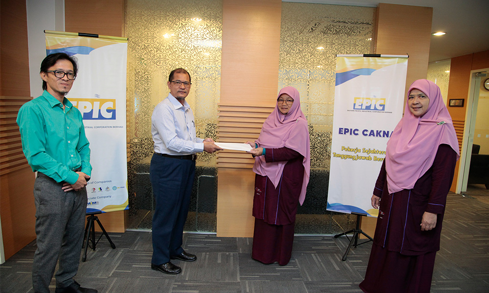 The voucher valued at RM 5,000 were handed over to Puan Azizah Mahmood, Chairman of Kuala Terengganu Welfare Association (KT Care) by Encik Saabi Wahab, Group Chief Executive Officer, accompanied by Encik Noor Tuah Jaafar, Group Chief Strategic Officer.