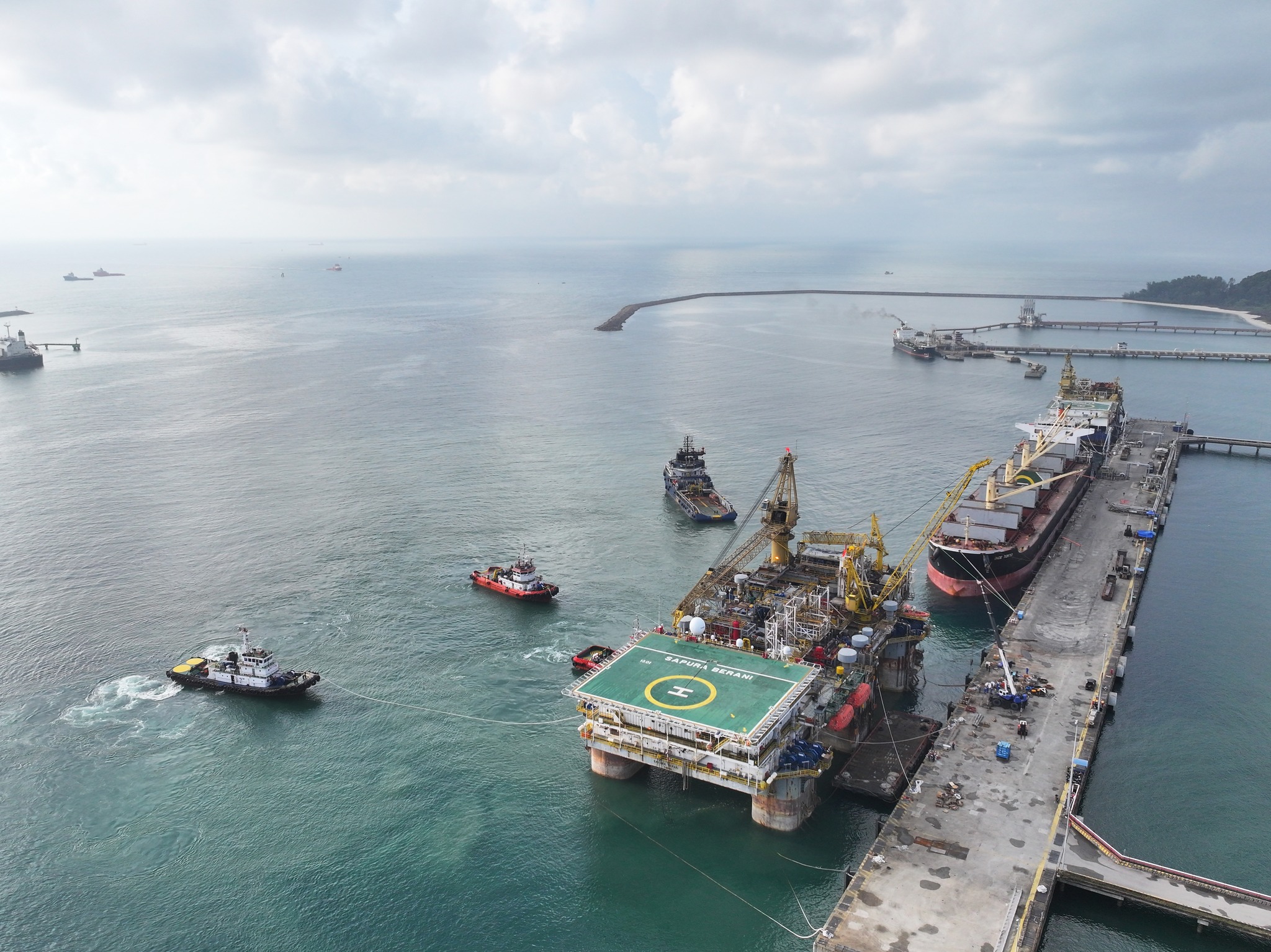 After nearly three months of being at the West Wharf, the tender-assisted drilling (TAD) rig Sapura Berani finally completed its maintenance works alongside other preparations for its next project. The rig safely departed from the Kemaman Port at around 9:30 am last Friday.