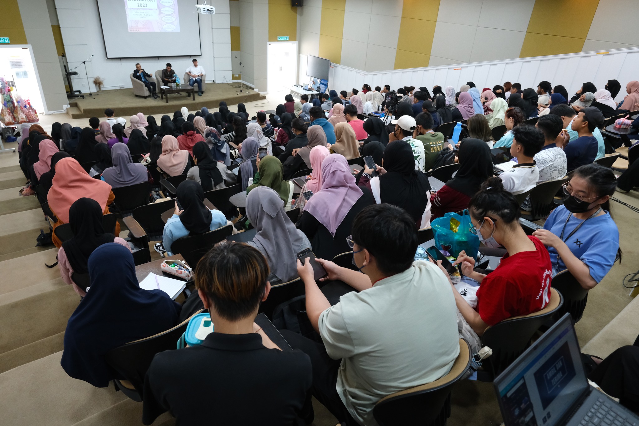 The event witnessed an incredible turnout of more than 1,200 enthusiastic students eager to explore the significance of the English language in the professional career world, tuning in to the sharing session physically from the venue and virtually from a few other locations. Haji Mohd Sukeri captivated the audience with his insightful talk, shedding light on the immense importance of mastering English in today's competitive job market.