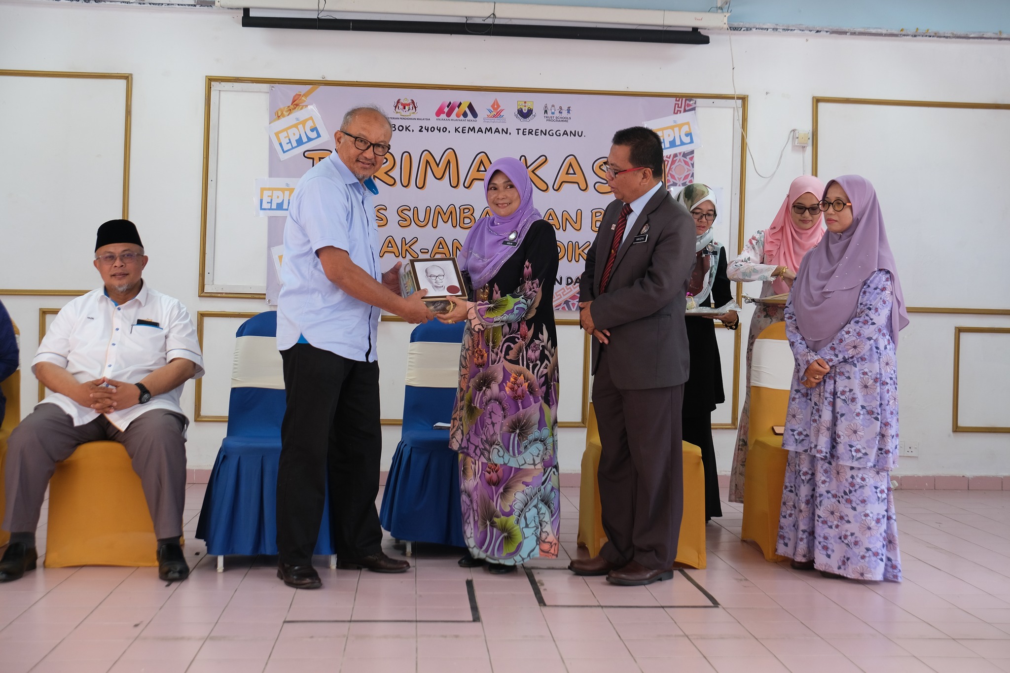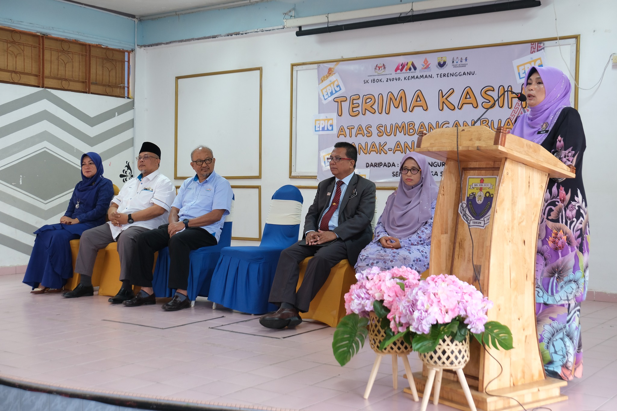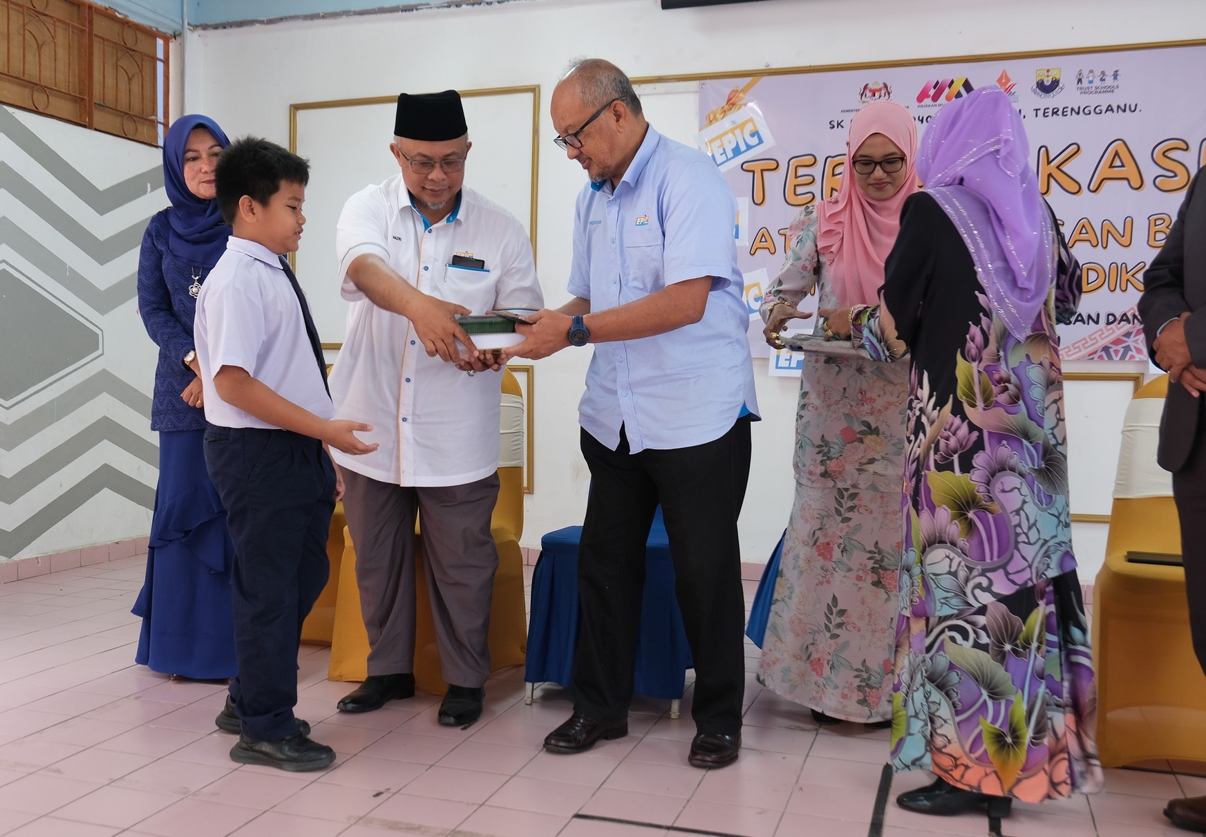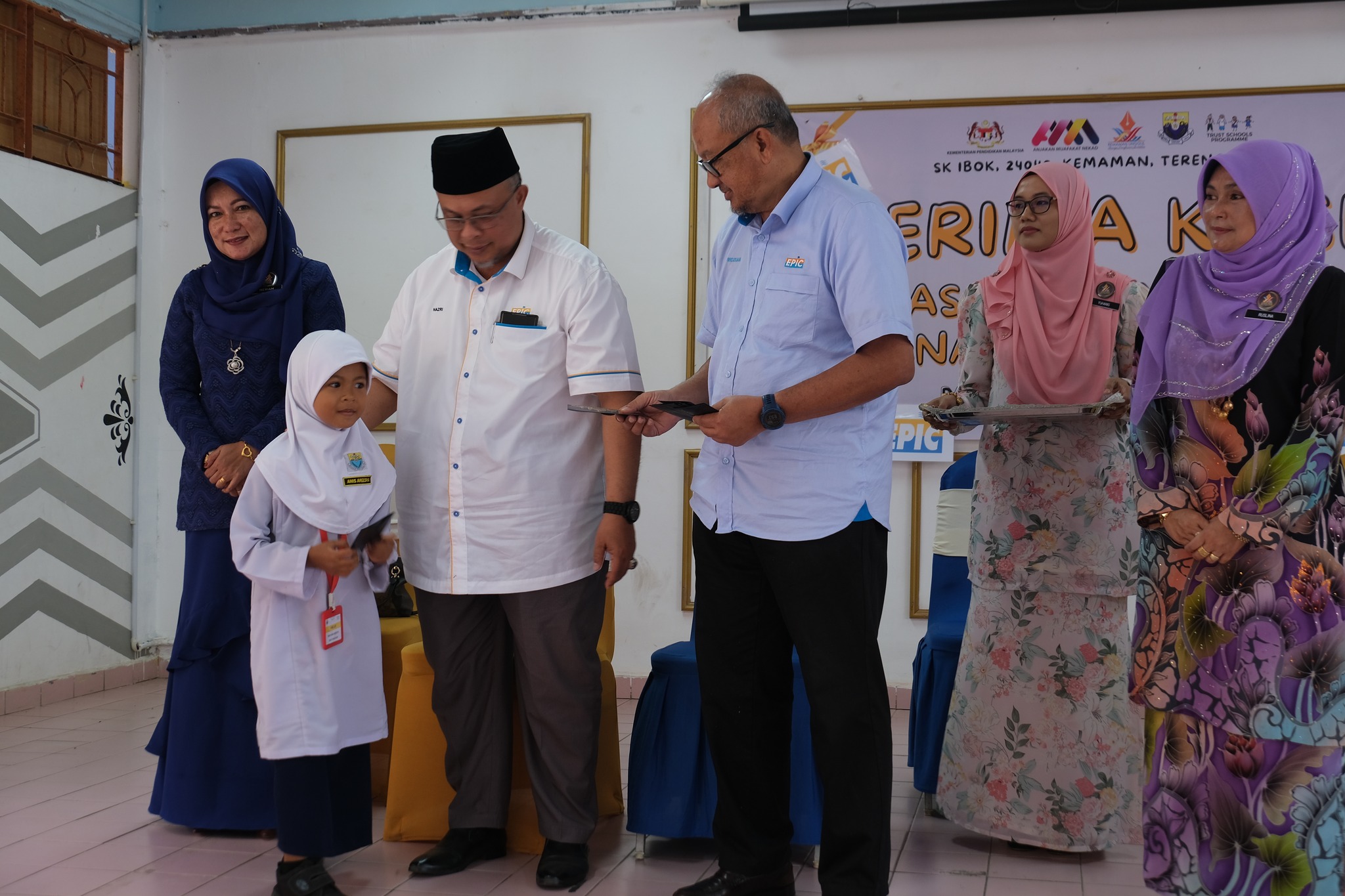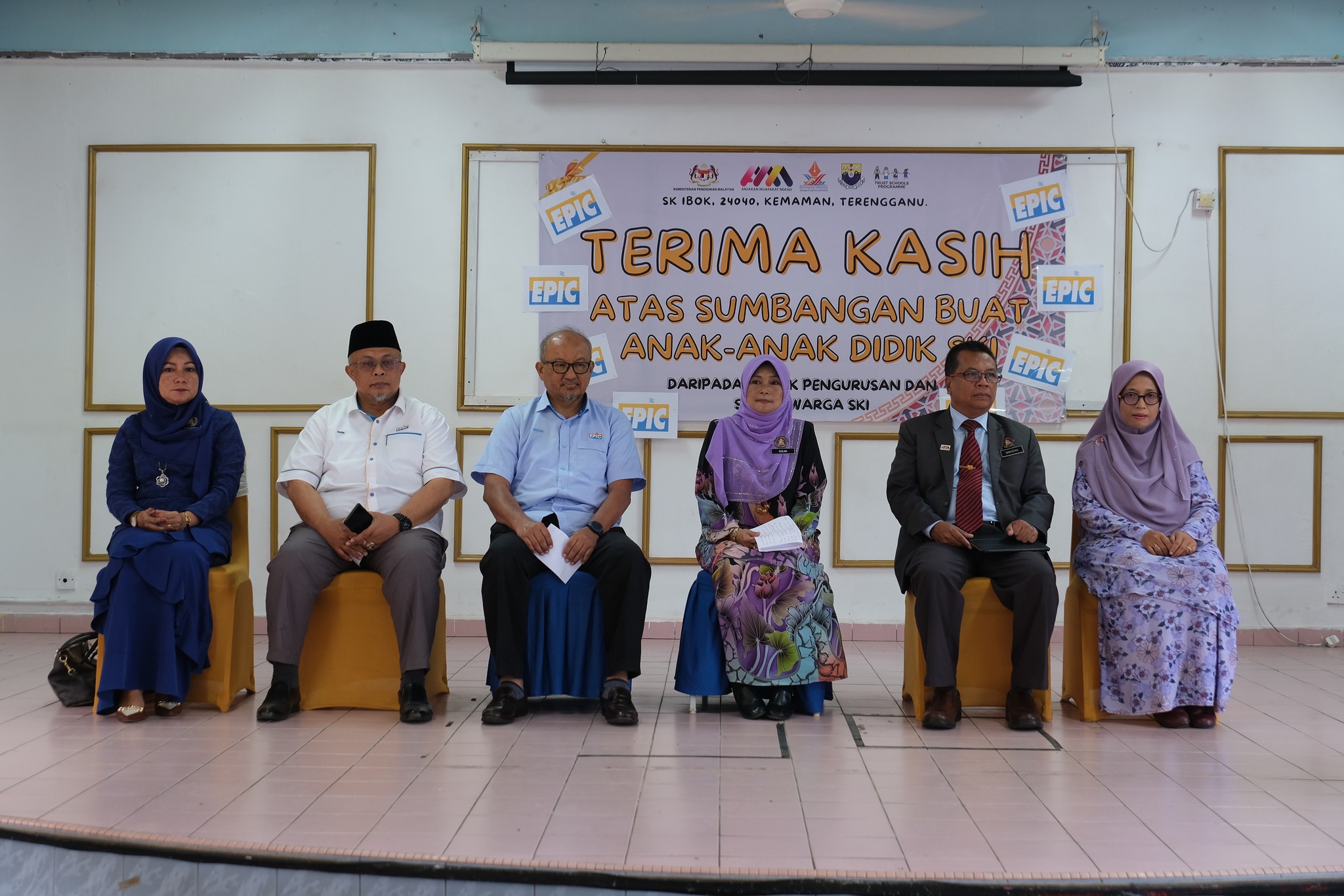 The handover session was completed by EPIC Group Chief Executive Officer Encik Ridzuan Ali and EPIC Solar Sdn Bhd and PBK Supplies & Services Sdn Bhd Director as well as Kijal State Assembly Coordinator Ustaz Hazri Jusoh, witnessed by Kemaman Deputy District Education Officer Encik Mahzan Hamzah, Kemaman Assistant District Education Officer Cik Meriam Daud, and SK Ibok Principal Puan Ruslina Yaacub.